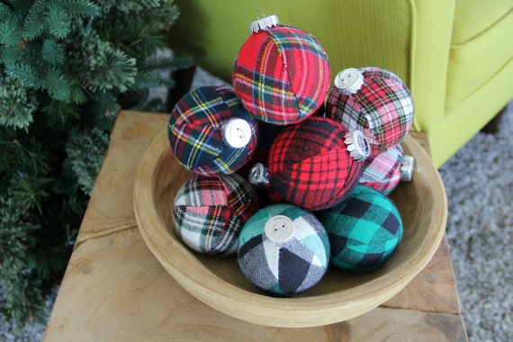 - Green and red plaid christmas ornaments sale