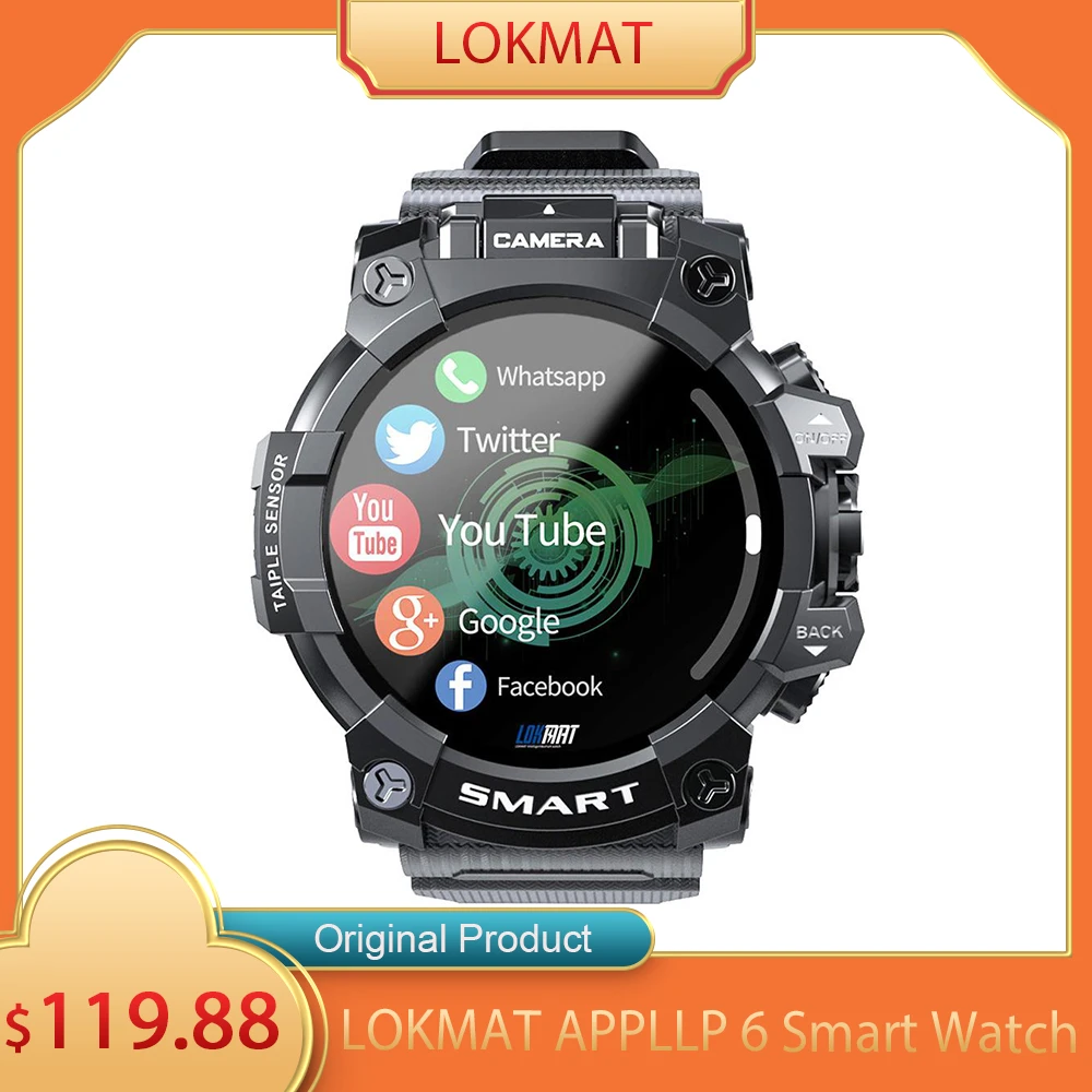 Lokmat appllp 6 clearance, Lokmat appllp 6スマートウォッチ13.0MPカメラ4グラムram 64グラムromアンドロイド10.0 BT5.0防水心拍数モニター4グラムスマートウォッチ男性|スマートウォッチ| - AliExpress clearance