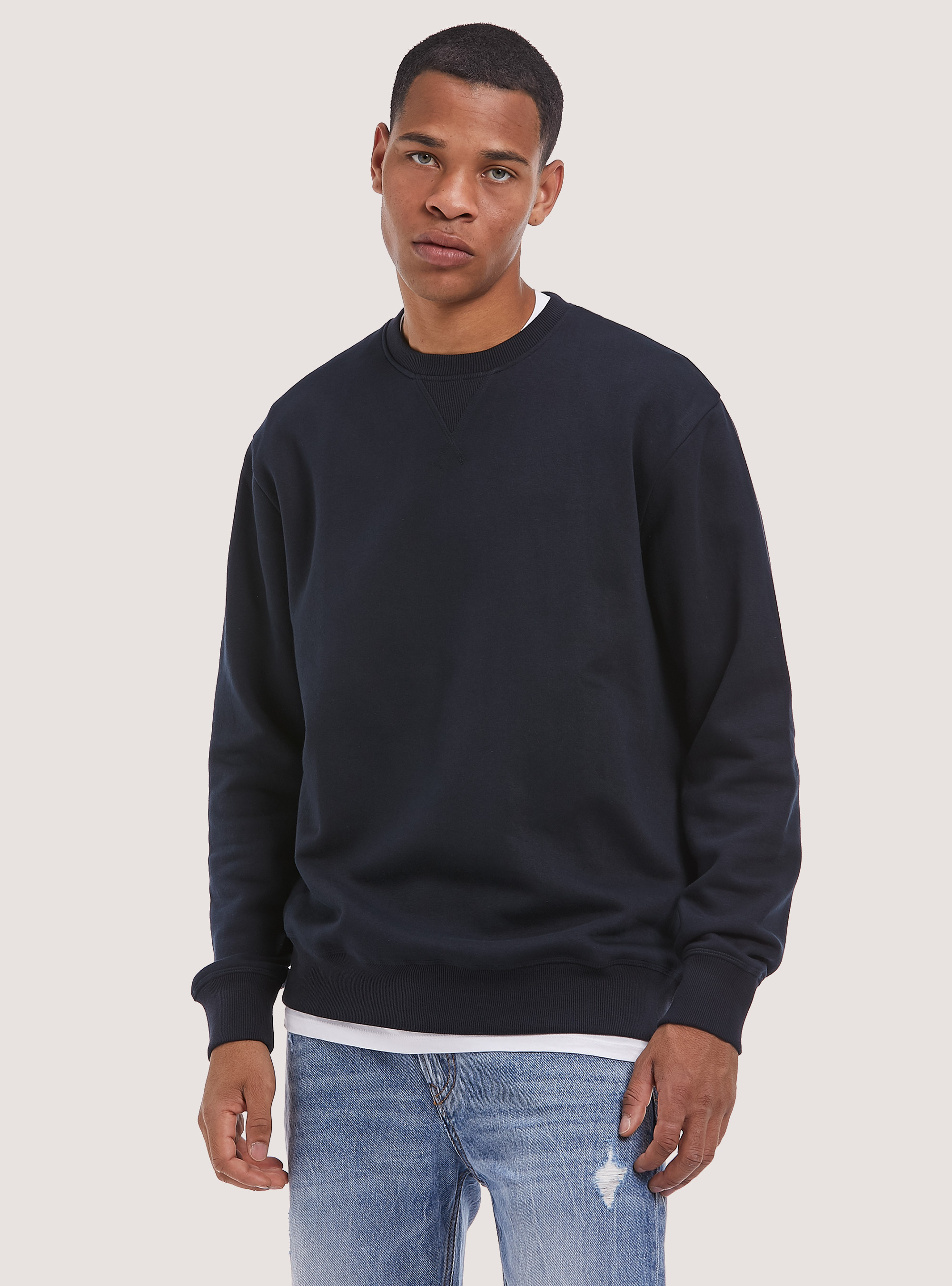- Solid crew neck sweatshirt