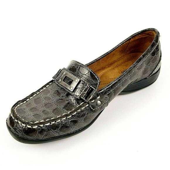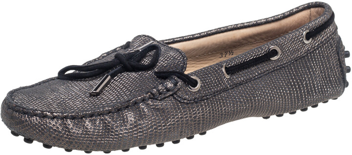 Dark grey loafers womens clearance, Tod's Dark Grey Lizard Embossed Leather clearance