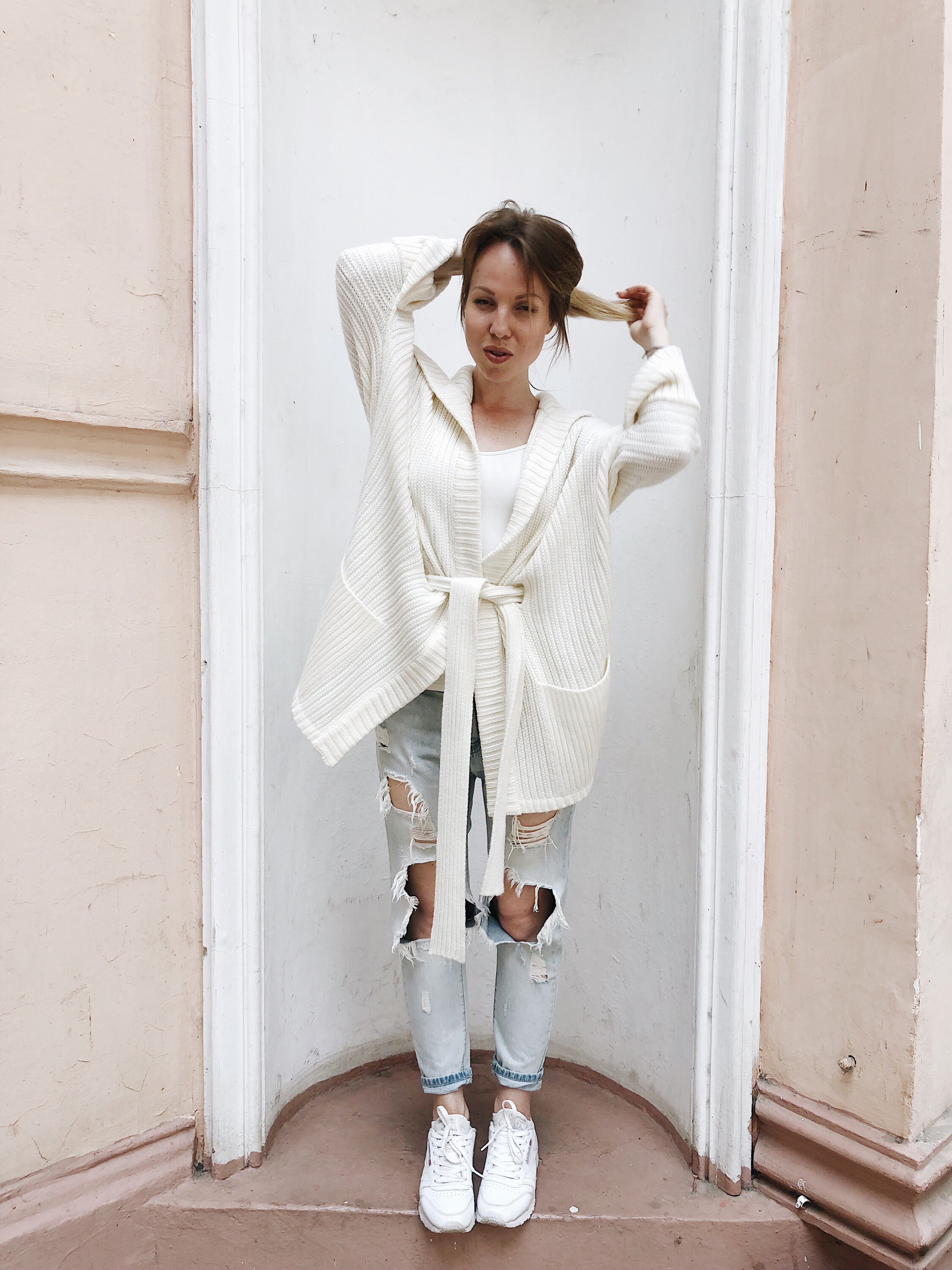 - White mid length cardigan clearance