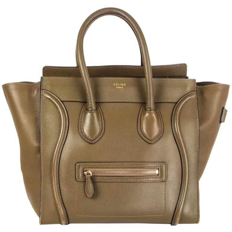 Celine olive bag clearance, 66841 auth CELINE olive green grained leather MICRO LUGGAGE Tote Bag | eBay clearance