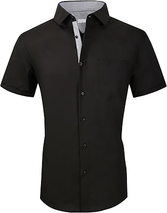 - Mens short sleeve black button down shirt