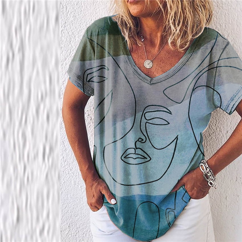 Abstract print shirt women's clearance, Loose Abstract Printed Tops V Neck clearance