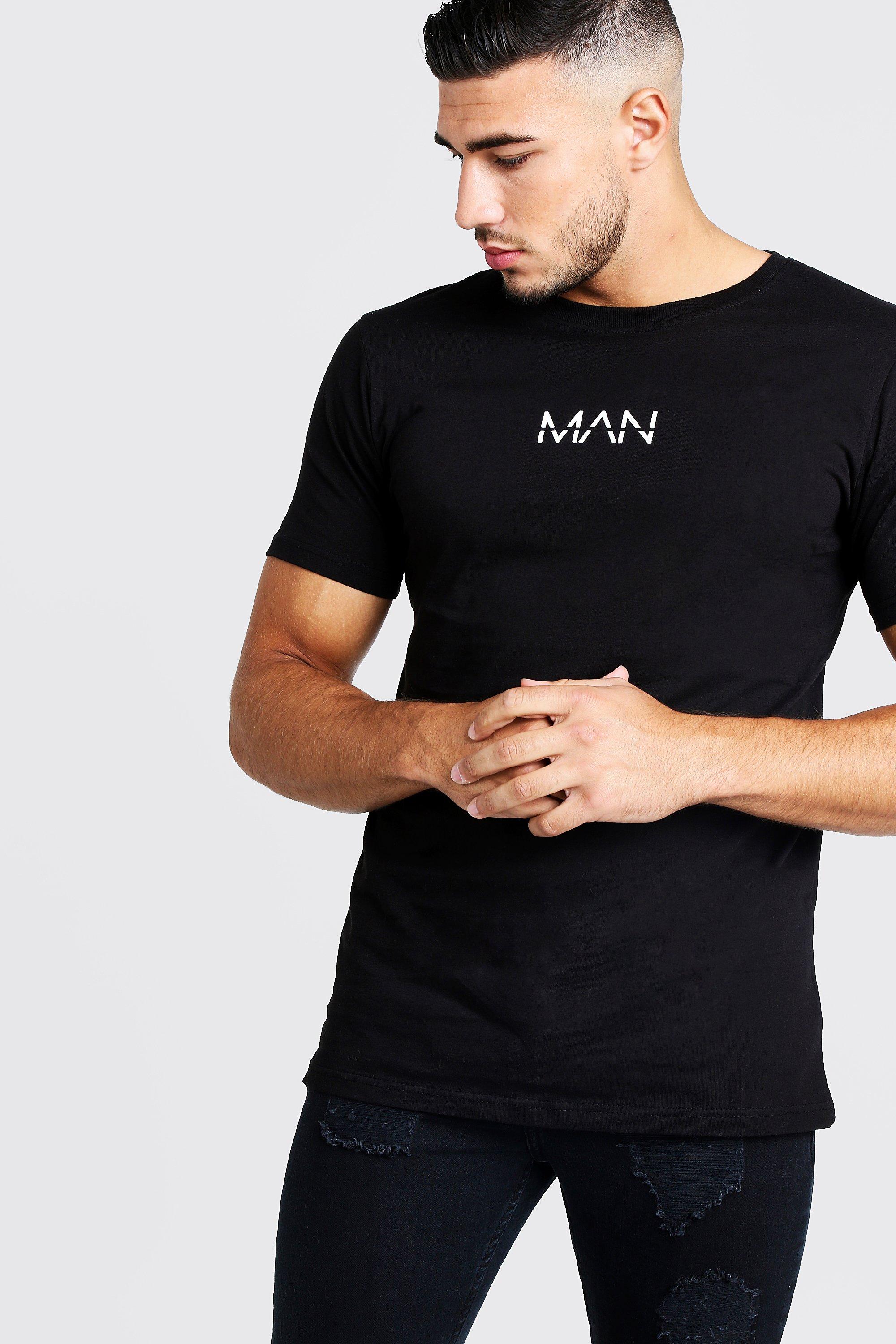 Boohooman black t shirt clearance, Original Man Logo Print T-Shirt clearance