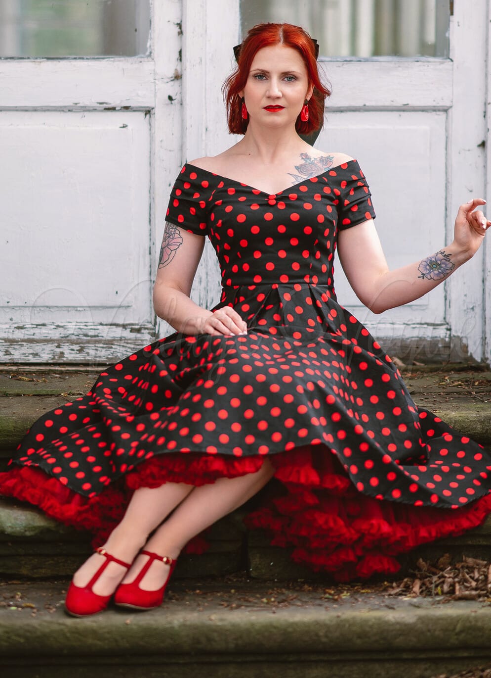 Rockabilly kleider clearance, Belsira 50's Retro Rockabilly Pin-Up Swing Kleid mit Punkte Muster in Rot Schwarz ⋆ Vintage Vogue clearance