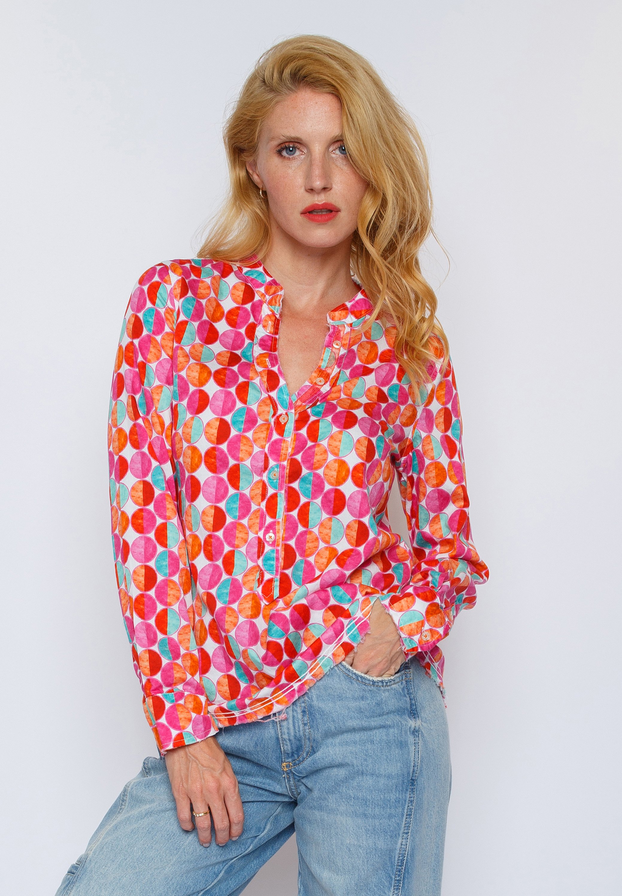 Damen bluse pink orange clearance
