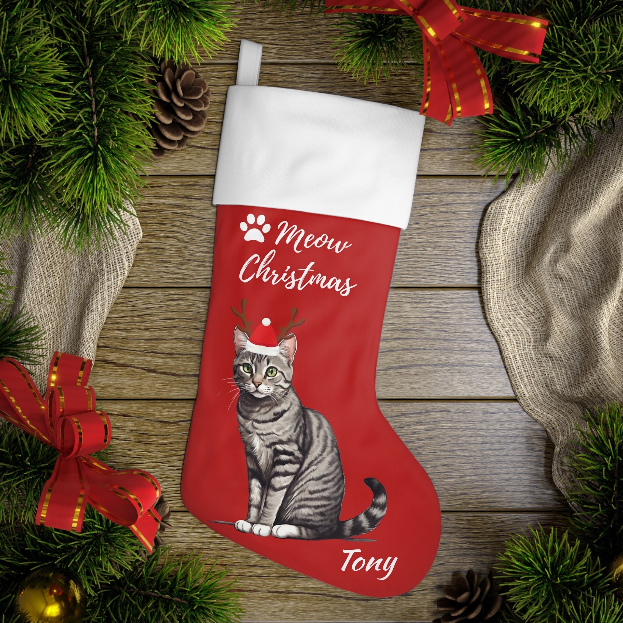- Grey cat christmas stocking sale online