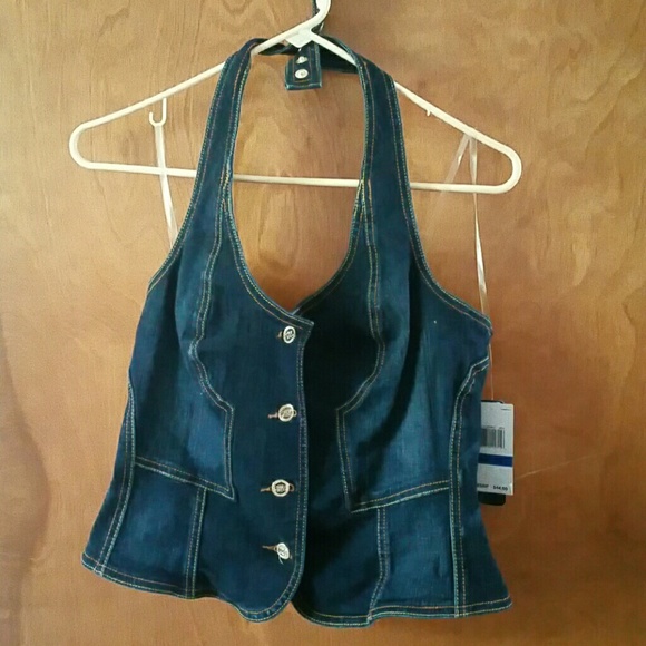 Denim halter vest clearance, Fabulosity Denim Halter Vest Top Xl Nwt clearance
