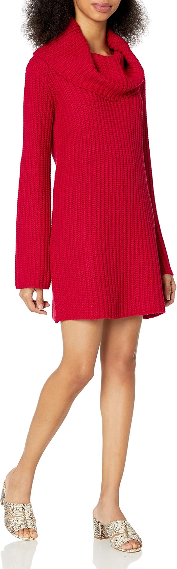 - Red cowl neck sweater dress