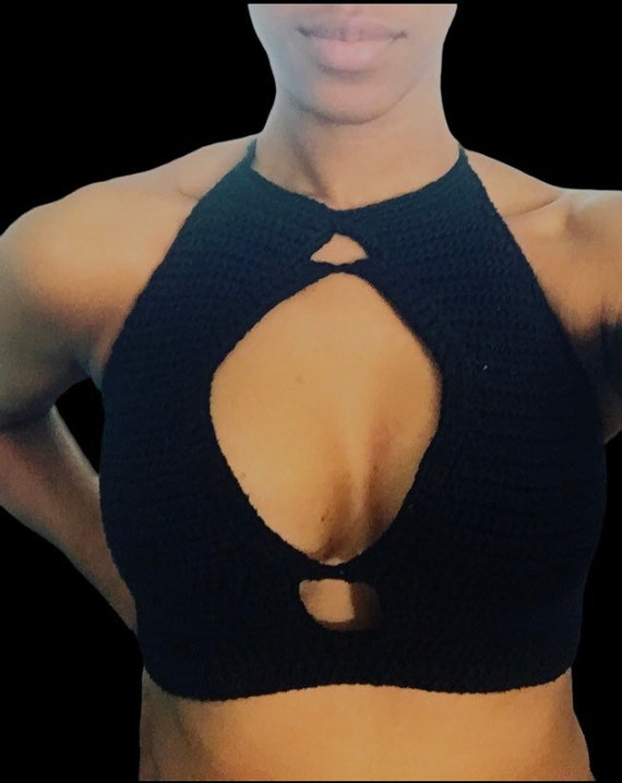 Boob cut shirt clearance, Crop Top Crochet. Under Boob Shirt clearance