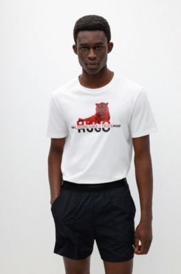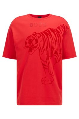Boss tiger t shirt clearance, BOSS - Organic-cotton T-shirt with clearance