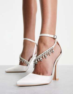 White embellished heels clearance, White Satin Embellished Pumps - CHARLES clearance