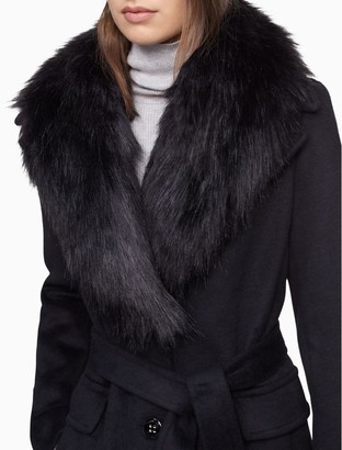 Faux fur shawl collar belted maxi coat clearance, calvin klein faux fur maxi coat cheap clearance