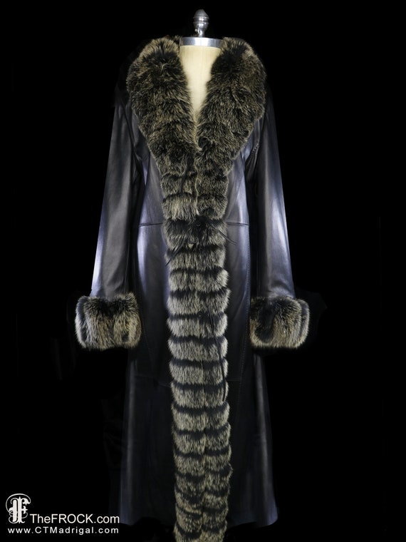 Warm evening coat clearance, Soft Black Leather Fox Fur Coat Winter Warm Day Evening Coat - Etsy clearance