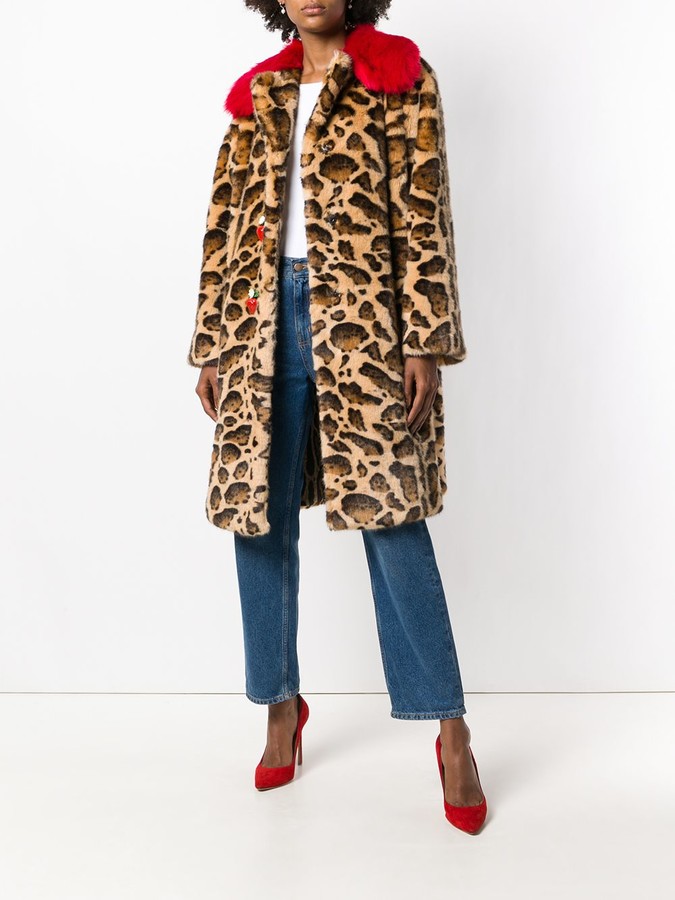 - Leopard print coat with fur collar shop