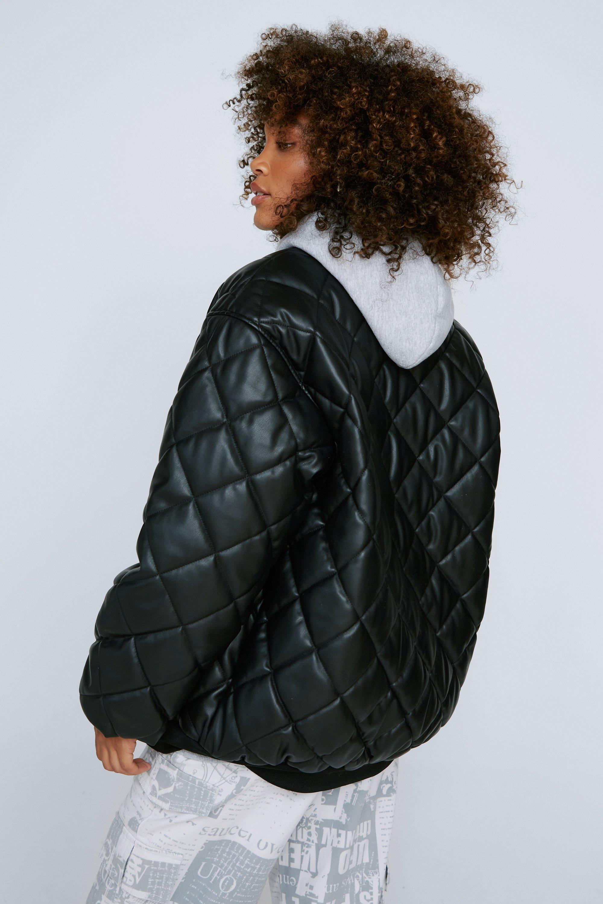 Quilted leather bomber jacket clearance, KAREN MILLEN Leather Quilted Bomber Jacket in Black | endource clearance