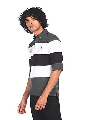 Mens grey polo shirt clearance, Long Sleeve Striped Polo Shirt clearance