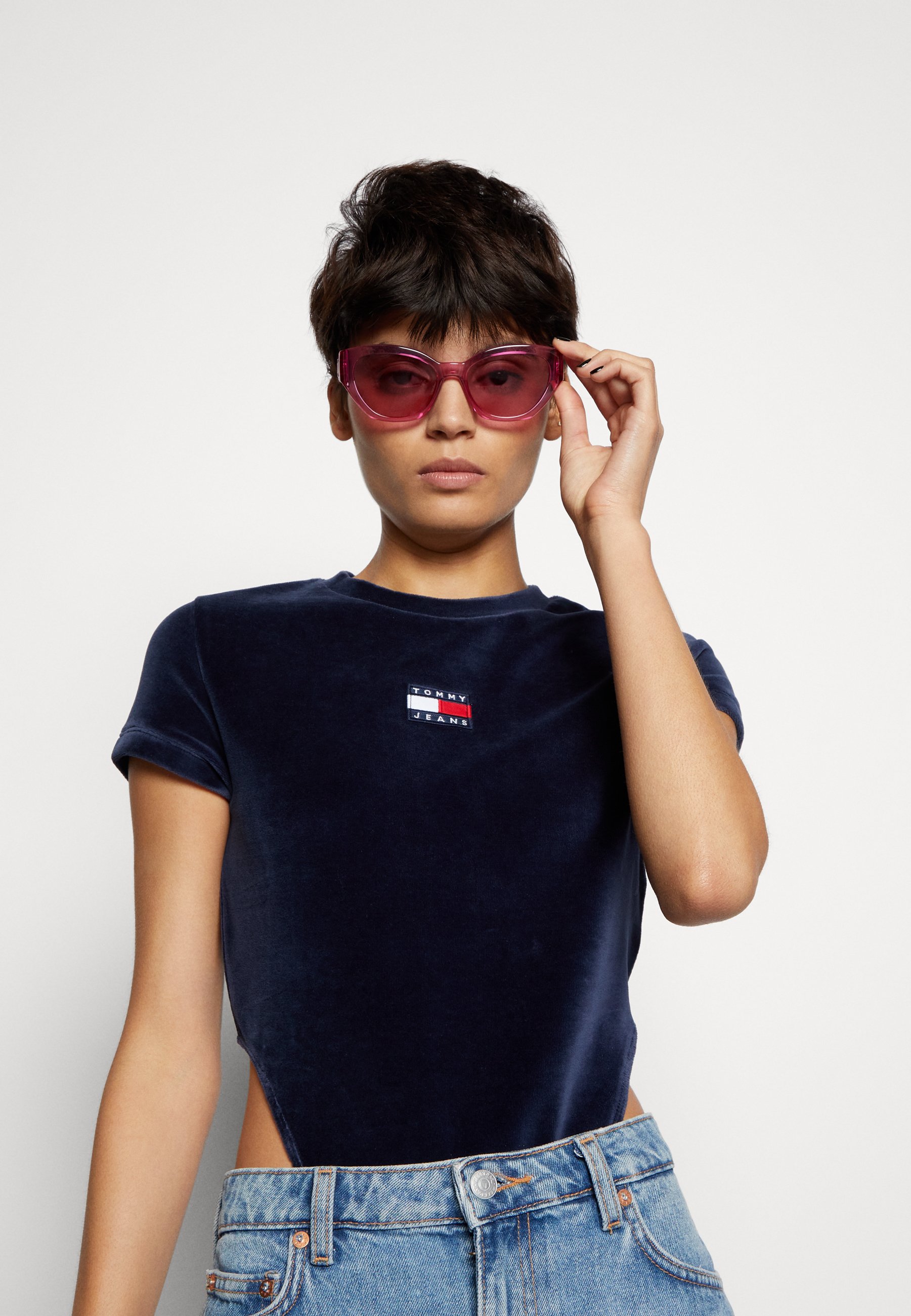 High cut t shirt clearance, Tommy Jeans Super HIGH CUT BODY Print Tshirt, Women's, Size: XXS, Dark blue clearance