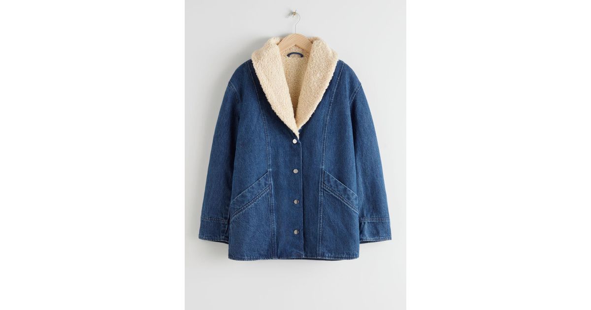 - Organic cotton shearling collar denim coat sale online