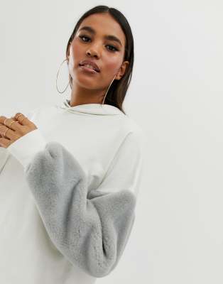 - Sweatshirt with fur sleeves clearance