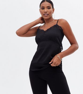 Black satin lace cami clearance