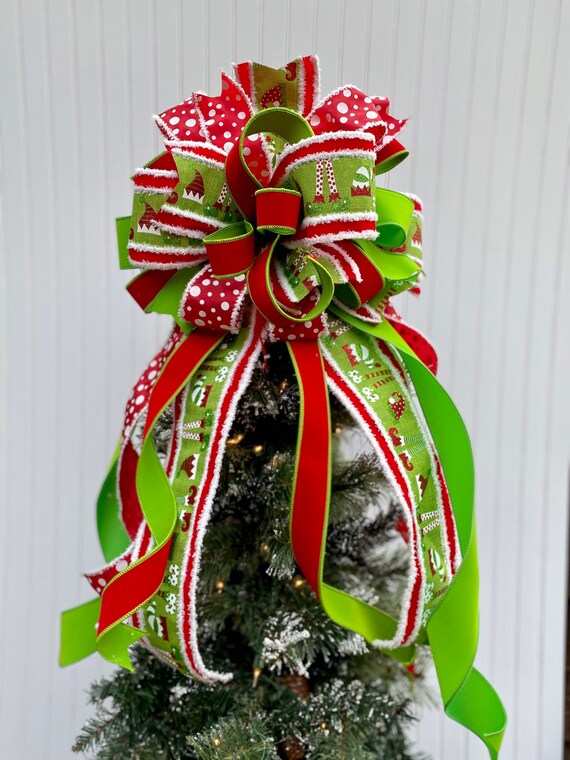 Green and red christmas tree ribbon clearance, Lime Green and Red Elf Christmas Tree Topper Holiday Bow - Etsy clearance