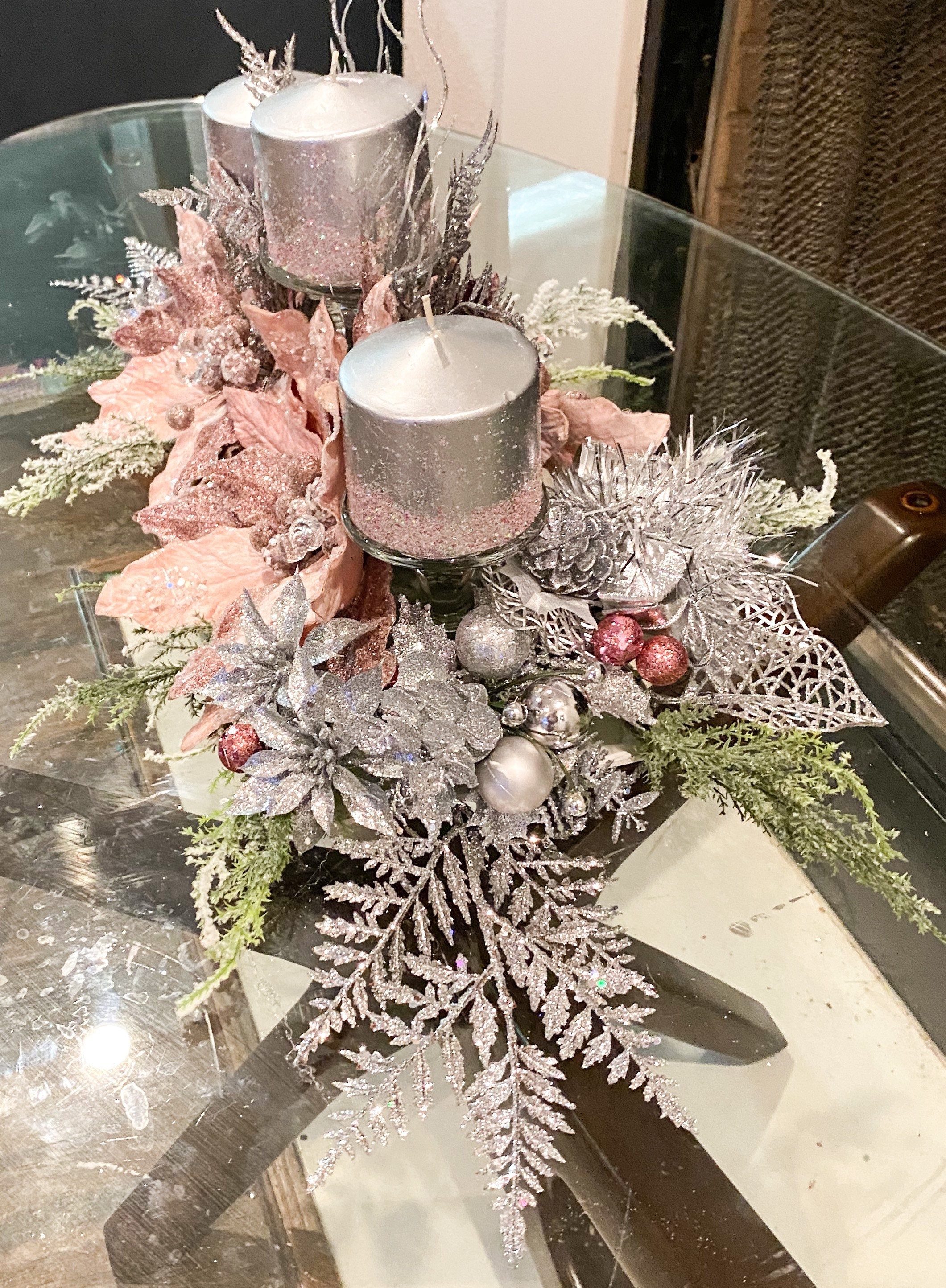 - Pink and silver christmas table decorations sold