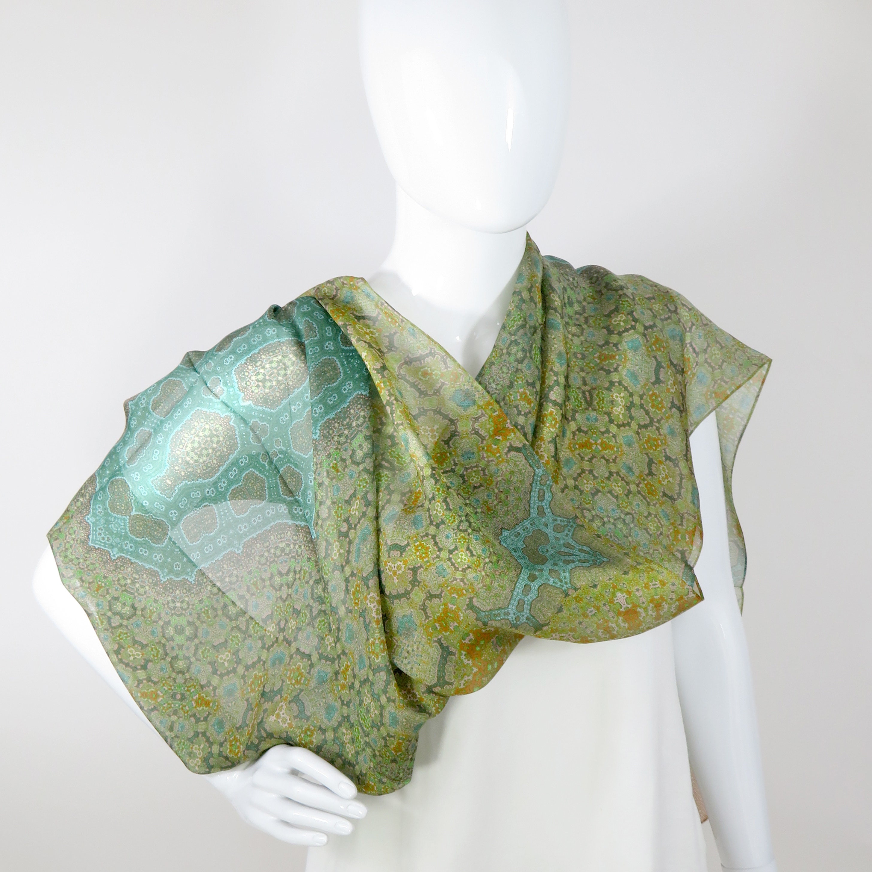 Sage green silk scarf clearance