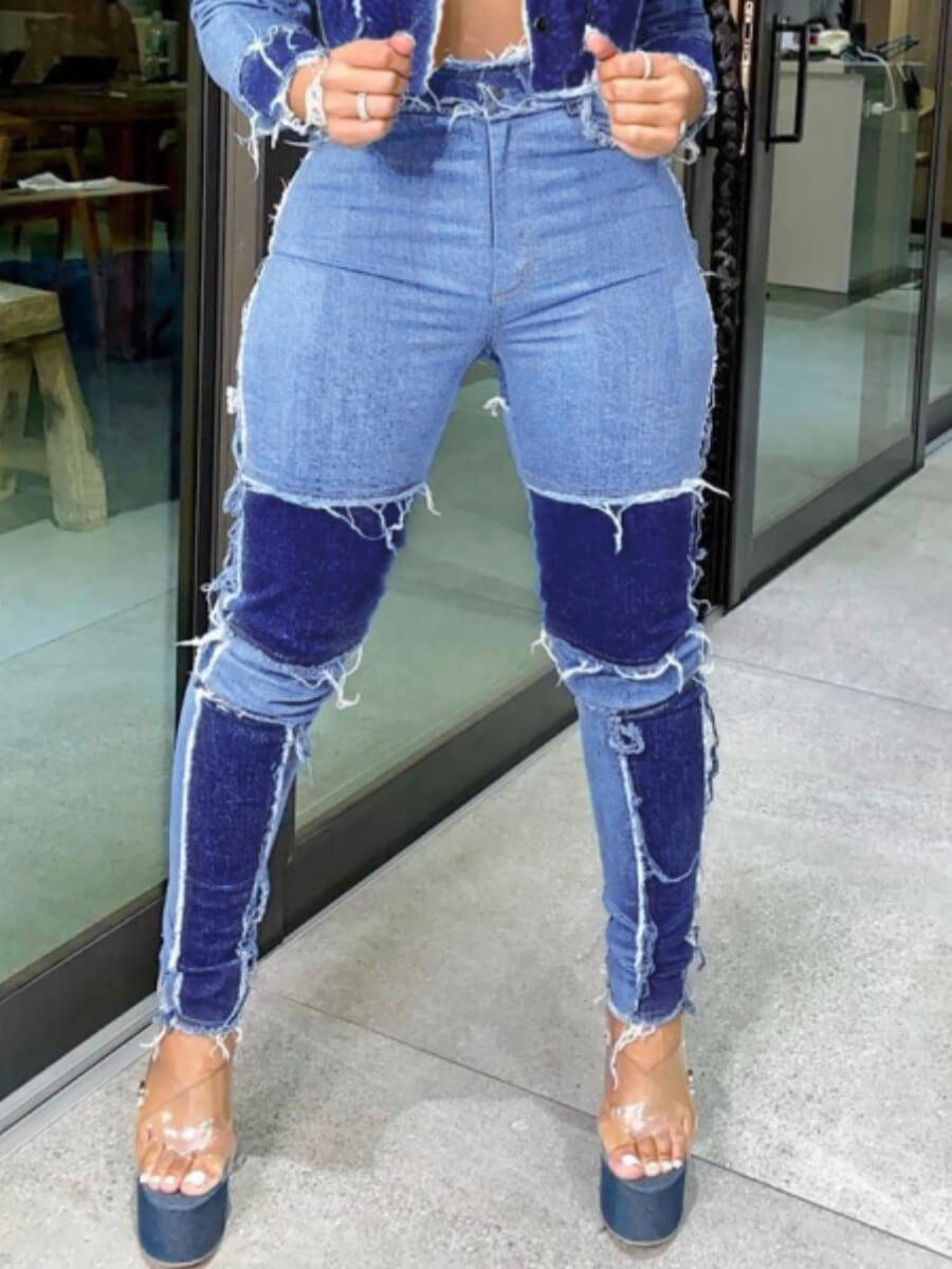 Lovely stylish patchwork blue jeans clearance, Lovely Trendy Patchwork Blue JeansLW clearance
