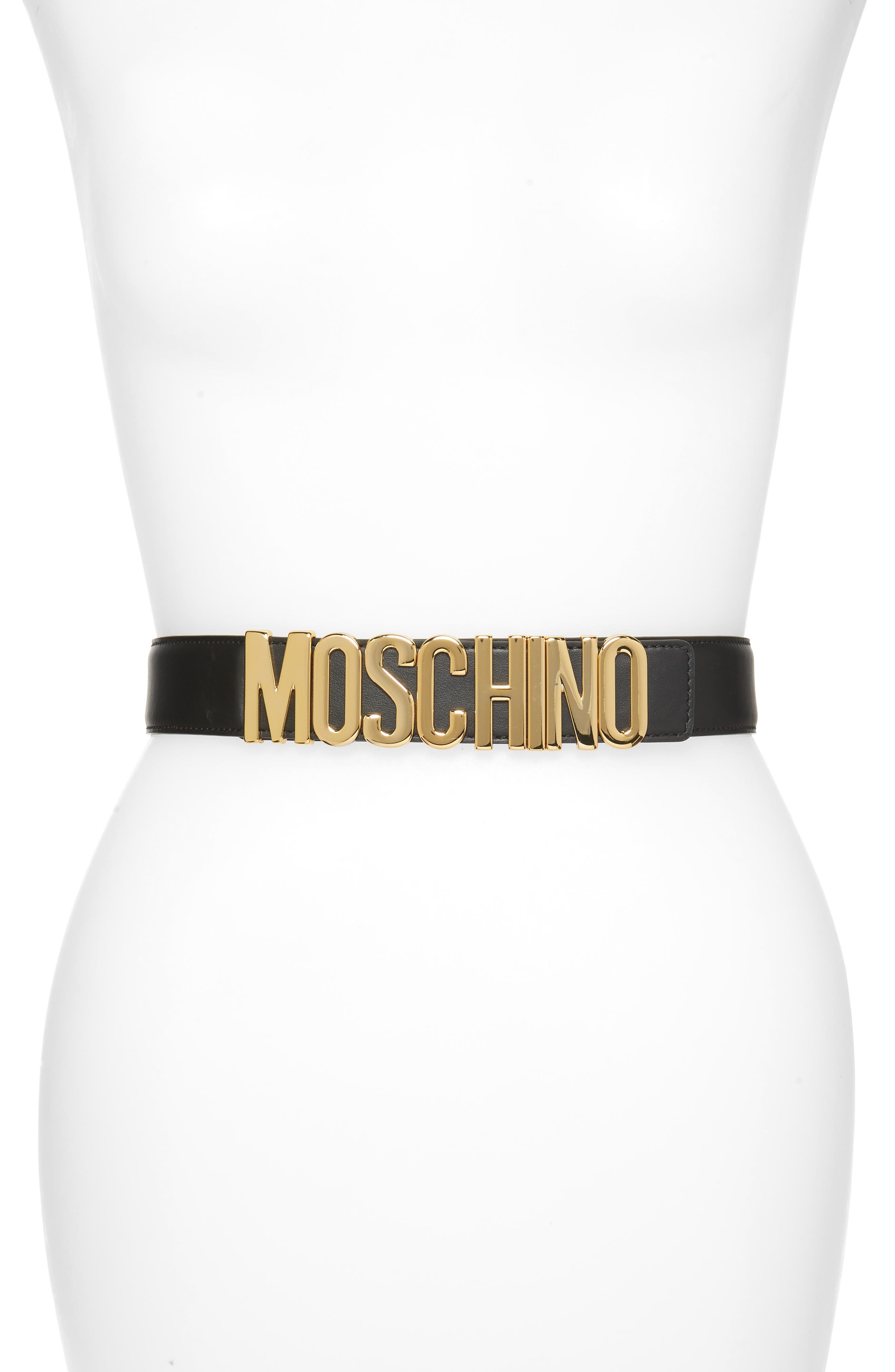 Moschino belt thin clearance, Moschino Gold Logo Leather Belt clearance