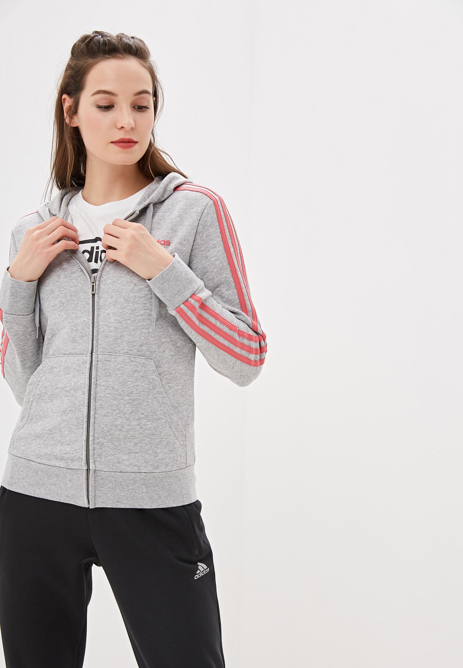 Ei0774 clearance, adidas Essentials Ess Ladies Hooded Grey \u0026 Pink Full Zip Hoodie Top Gym New | eBay clearance