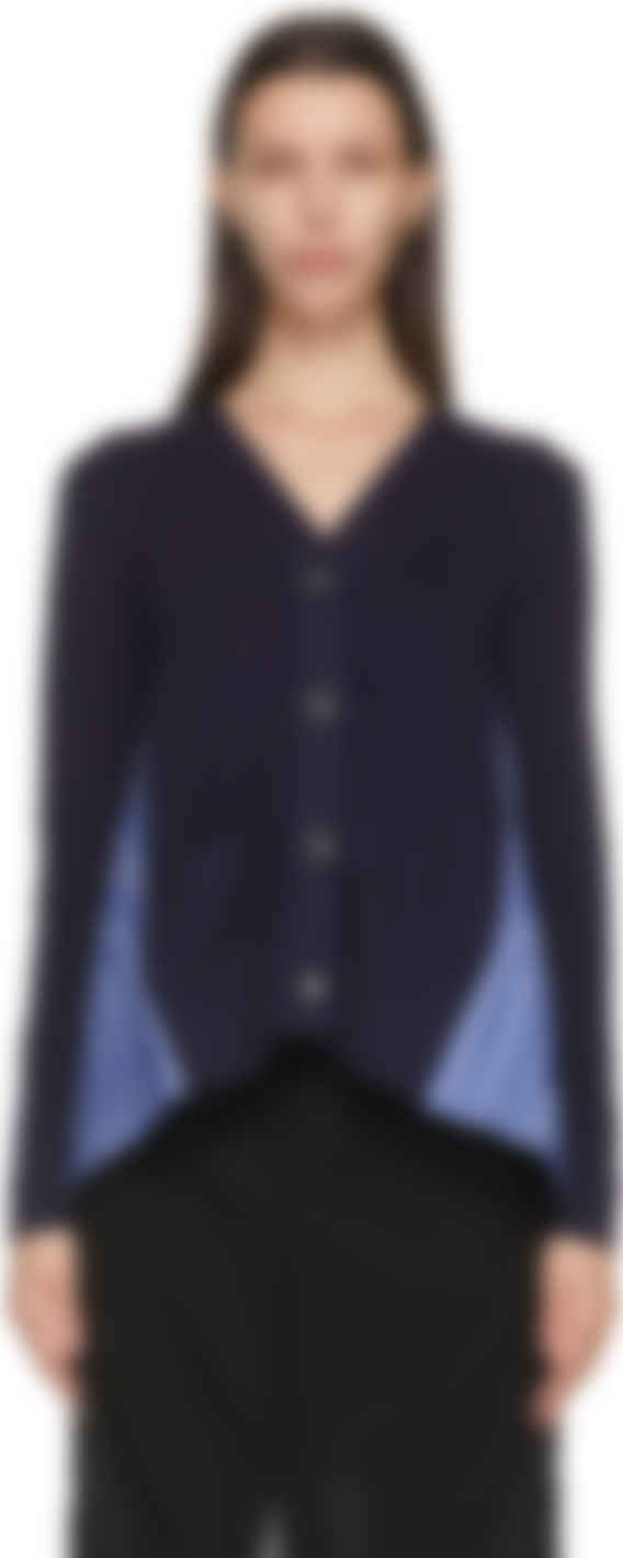 Sacai cardigan clearance, Blue Stripe Pleated Back Cardigan | SSENSE clearance