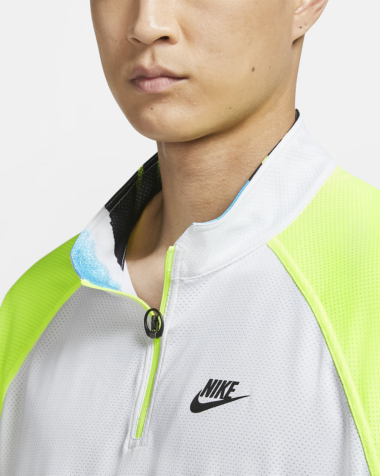 Nike men's new york court slam half zip tennis polo white and hot lime clearance