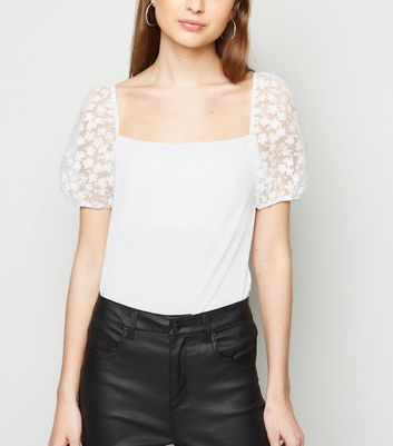 New look puff sleeve top clearance, Petite White Daisy Organza Puff Sleeve clearance