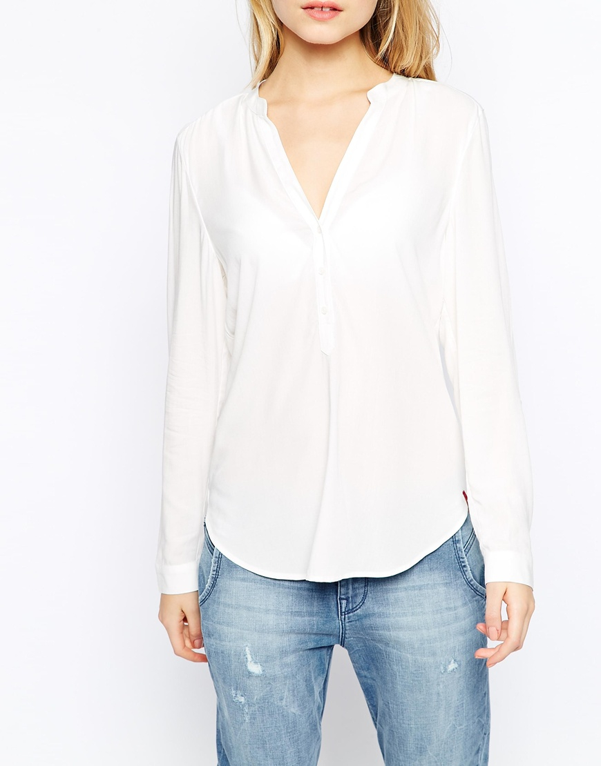 - White collarless blouse womens outlet