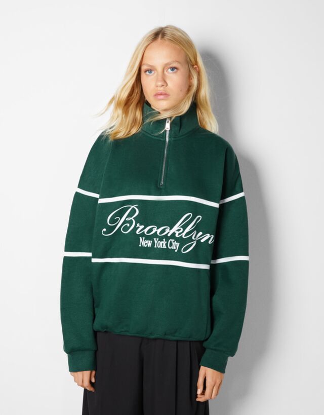 High sweatshirt clearance, High neck zip sweatshirt with print clearance