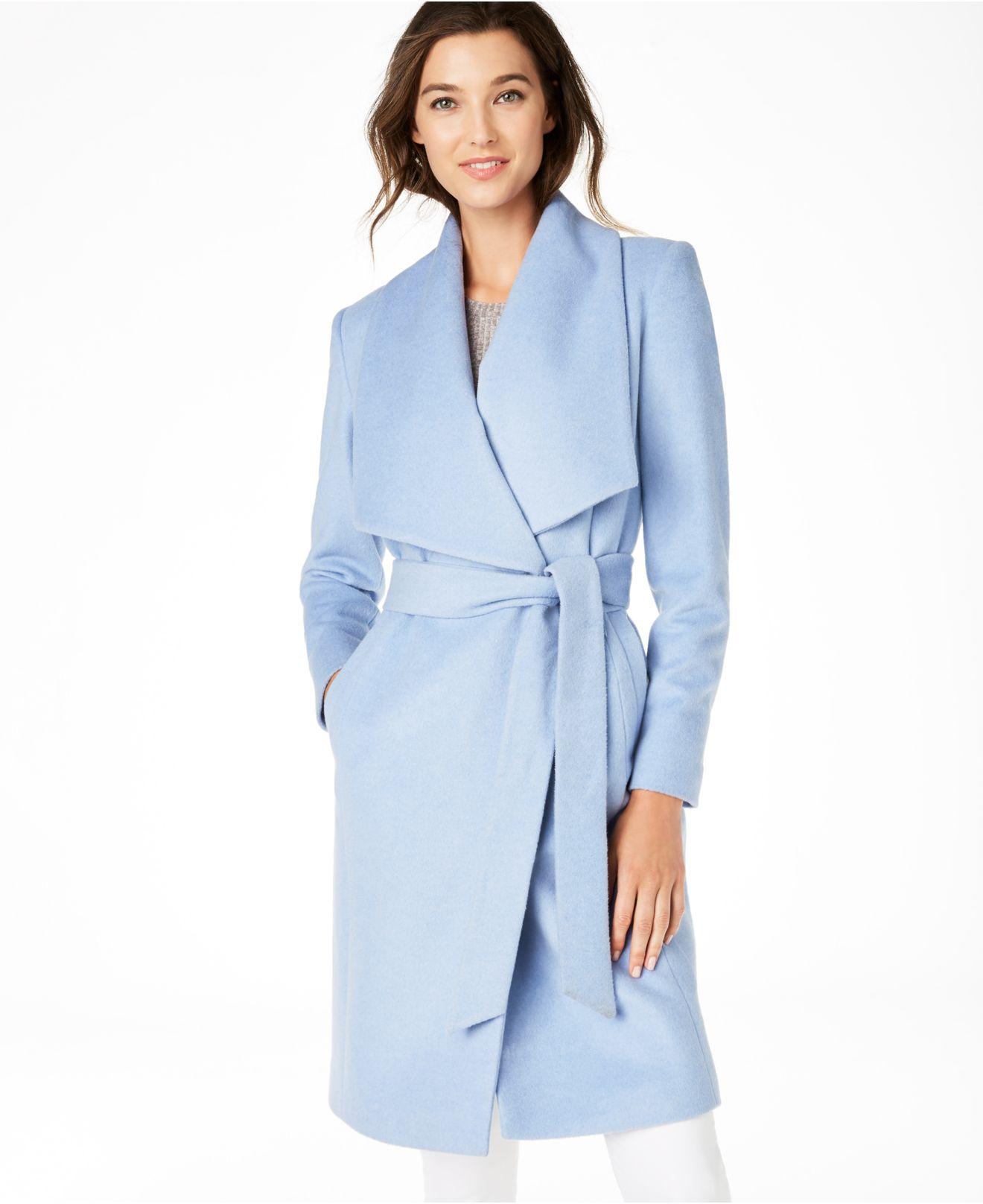 Blue wrap coat womens clearance, Cole Haan Wool Wrap Coat in Ice Blue clearance