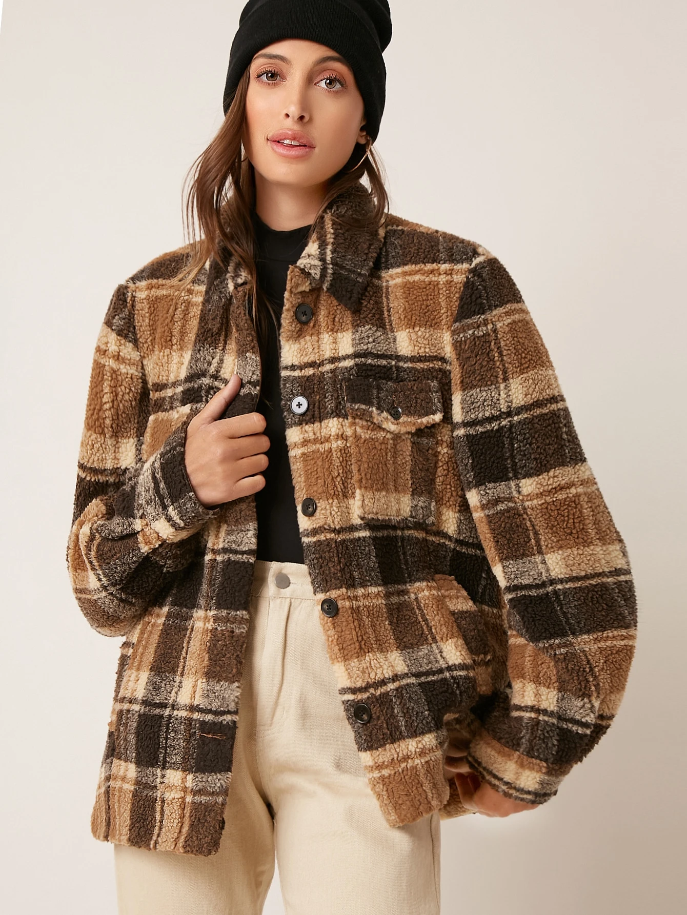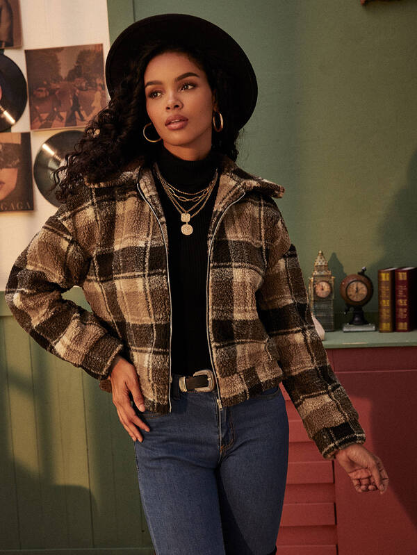 Tartan teddy coat clearance, plaid teddy coat cheap buy online clearance