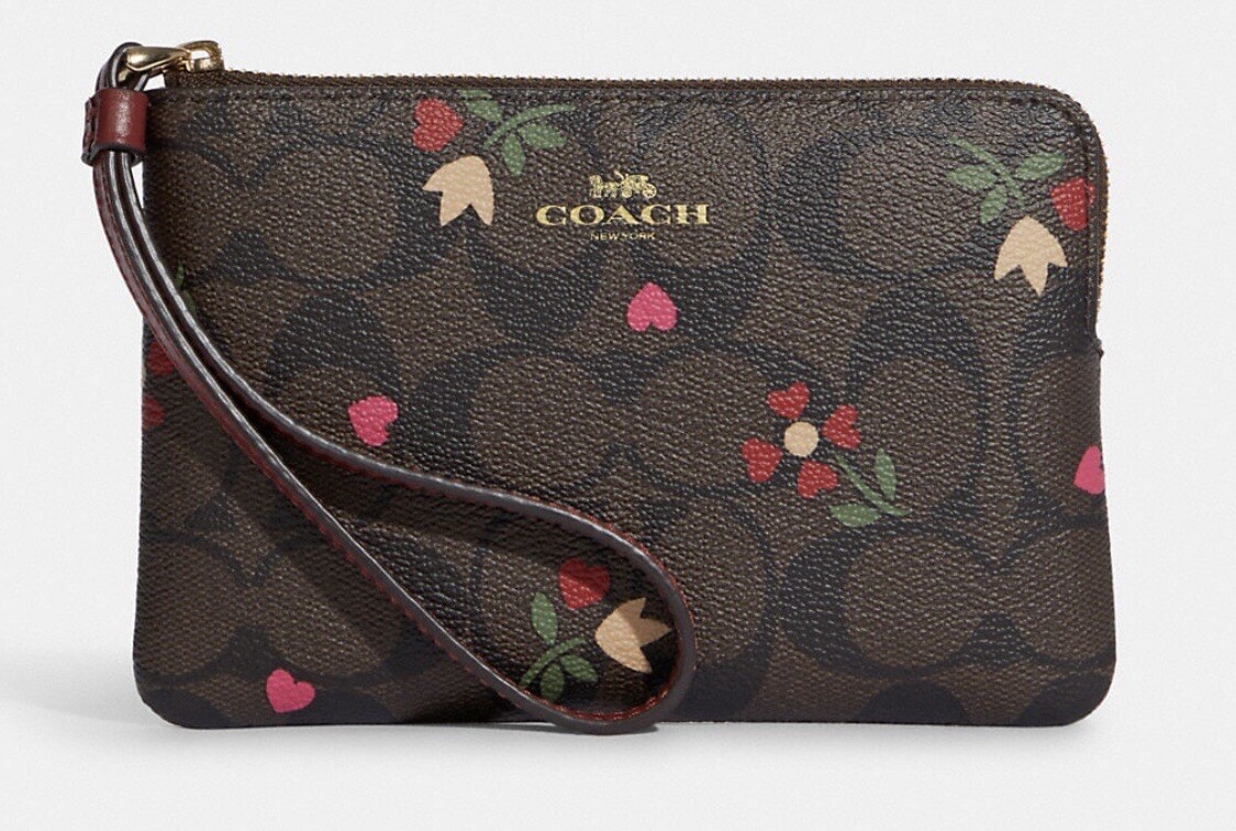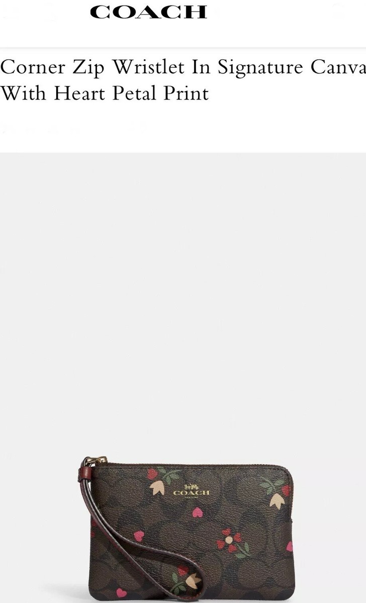 Corner zip wristlet in signature canvas with heart petal print clearance, Coach Signature Canvas with Heart Petal Print Corner Zip Wristlet - Gold/Brown Multi for sale online | eBay clearance