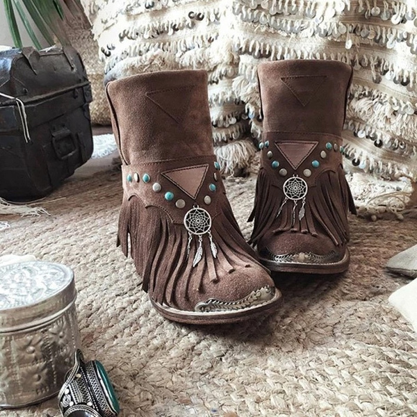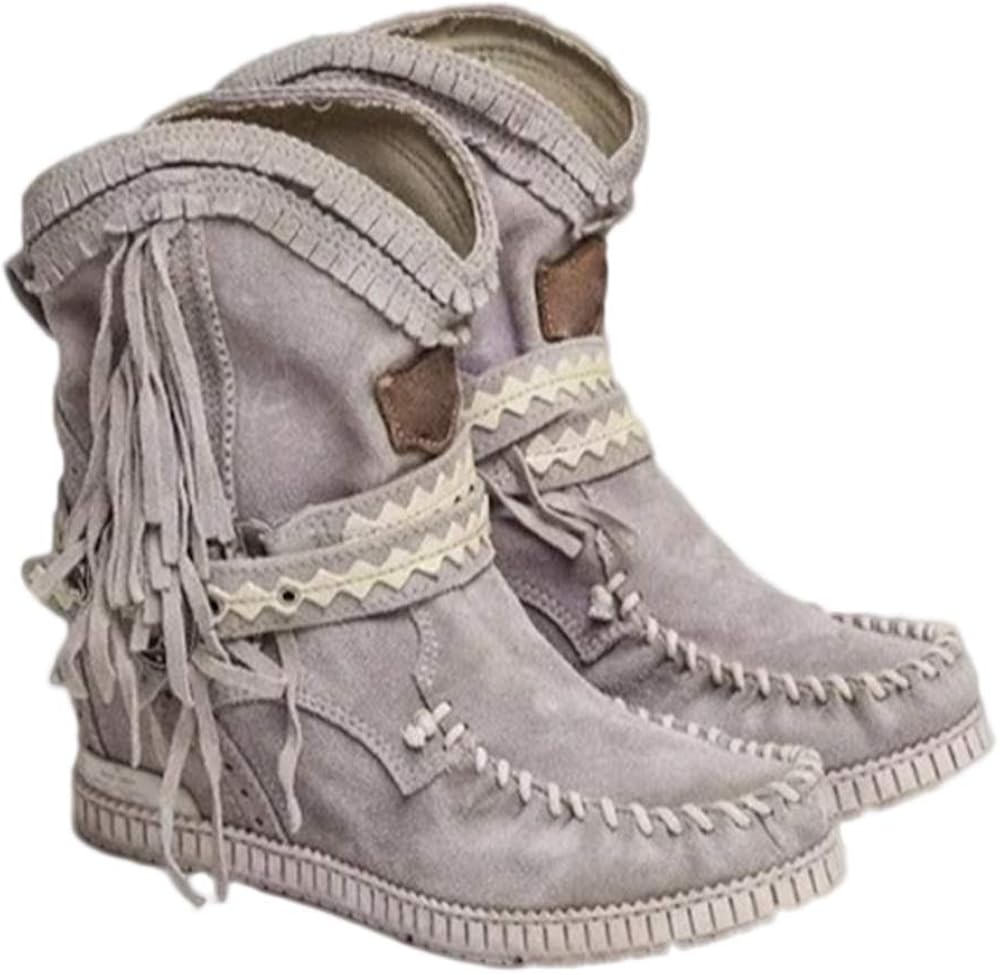 Cozy flat heel tassel boot clearance, AODONG Ankle Boots for Women with Heel clearance
