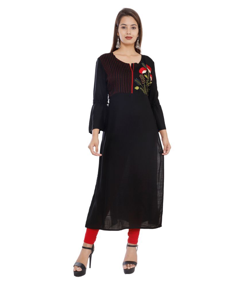 Nitvan kurtis clearance, Nitvan Black Rayon Straight Kurti - Buy clearance