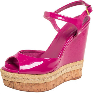 Pink gucci wedges clearance, Gucci Pink Patent Leather Hollie Wedge clearance
