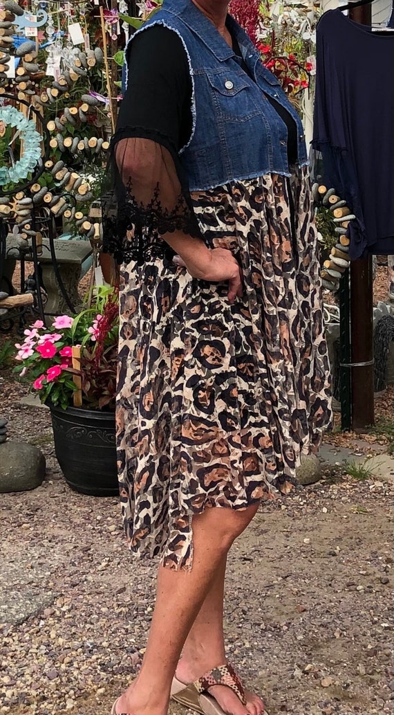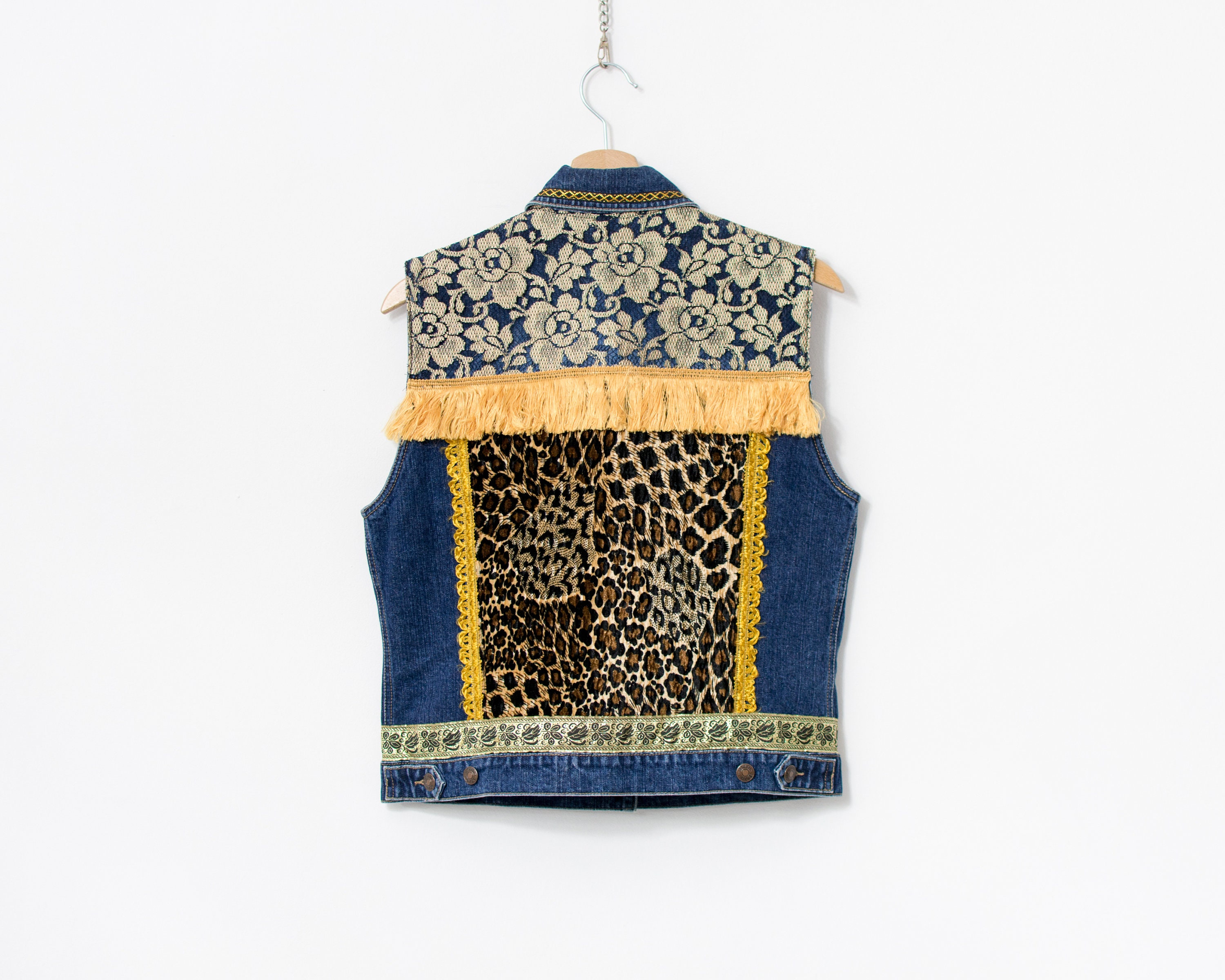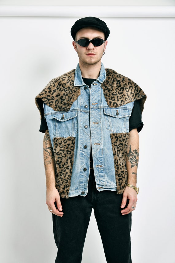 Denim leopard vest clearance, Embellished Denim Vest Boho Leopard Vintage Festival Women - Etsy clearance