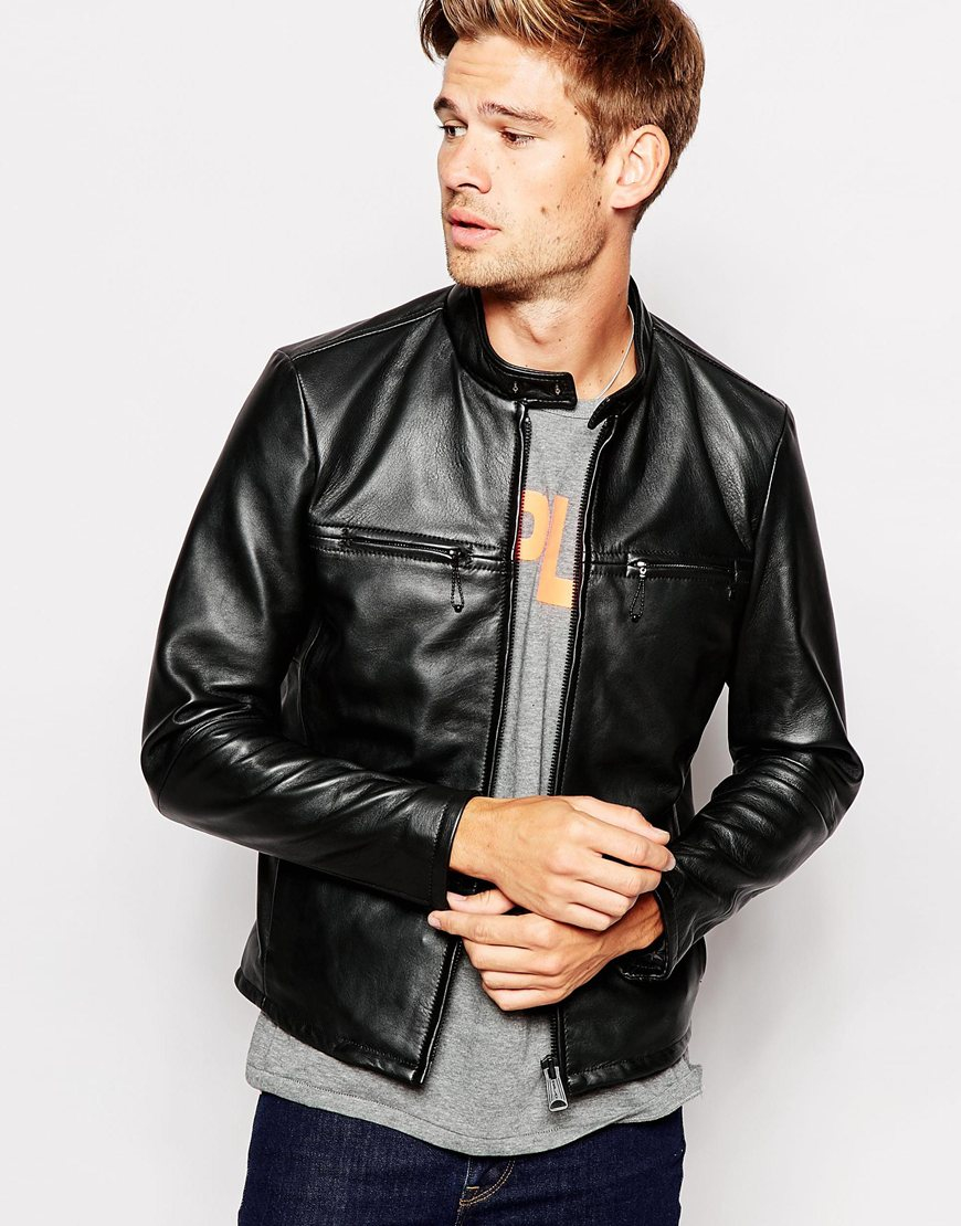 Replay biker jacket clearance, Replay Black Lamb Leather Biker Jacket clearance
