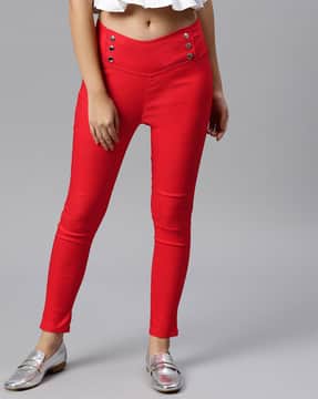 Red jeggings clearance, Buy Miss Chase Red High Rise Jeggings clearance