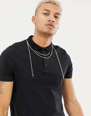 Gold chain black shirt clearance, ASOS DESIGN polo shirt with gold neck clearance