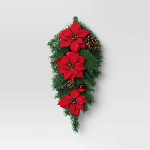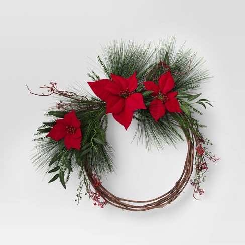 Target christmas flowers clearance, 24 Poinsettia Flower And Vine Artificial Christmas Wreath Red - Wondershop™ : Target clearance