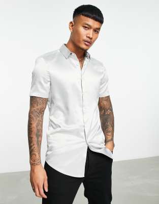 Satin grey shirt clearance