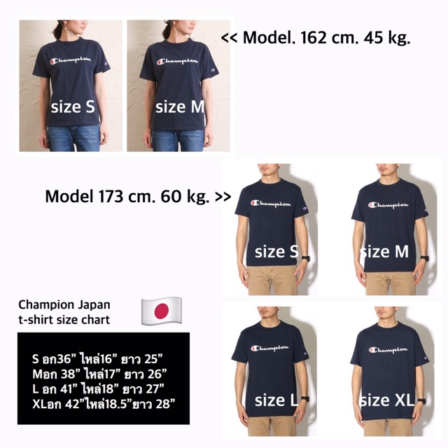 - Champion t shirt size chart japan free shipping